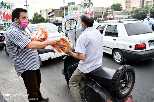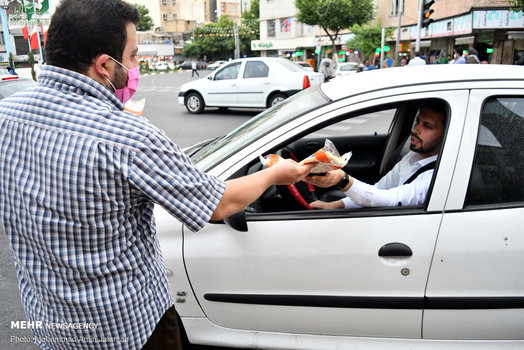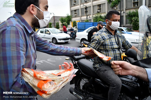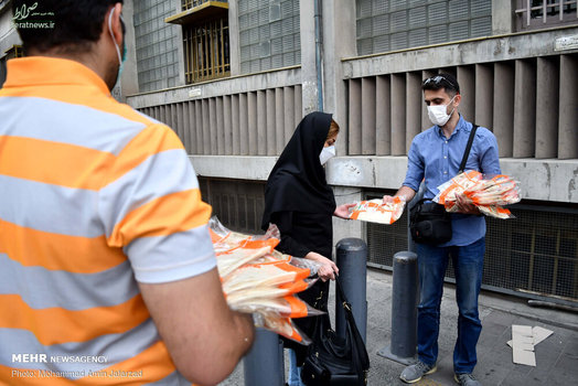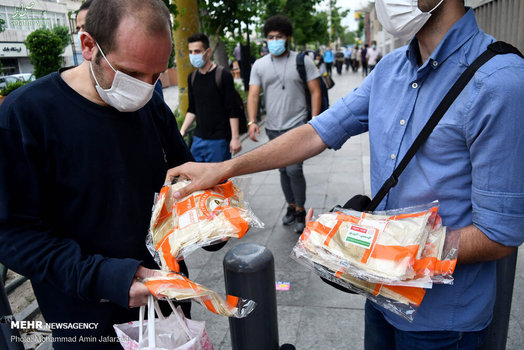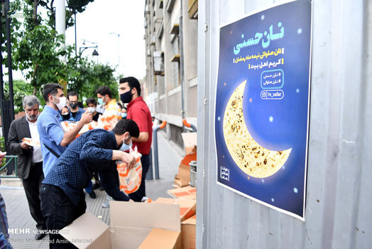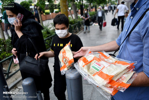 امسال هم در نیمه ماه مبارک رمضان هم زمان با میلاد کریم اهل بیت و با همه گیری ویروس کرونا ،نان های صنعتی بسته بندی شده در میادین شهر تهران به صورت صلواتی و رایگان توزیع کردند.