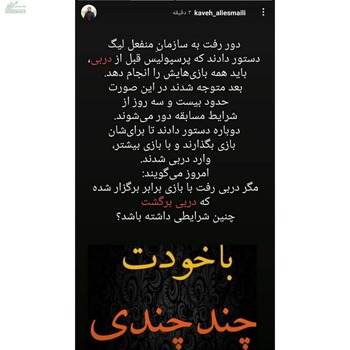 پس از اینکه باشگاه پرسپولیس با انتشار بیانیه ای تند، نسبت به برنامه اعلام شده از سوی سازمان لیگ برای برگزاری بازی های معوقه و دربی پایتخت اعتراض کرد، محمد کاظمی،مدیر رسانه ای باشگاه استقلال با انتشار یک استوری، موضع تندی نسبت به این بیانیه گرفت و در ادامه هم کاوه علی اسماعیلی، مدیر رسانه ای باشگاه پرسپولیس، پاسخ این اعتراض آبی ها را داد.