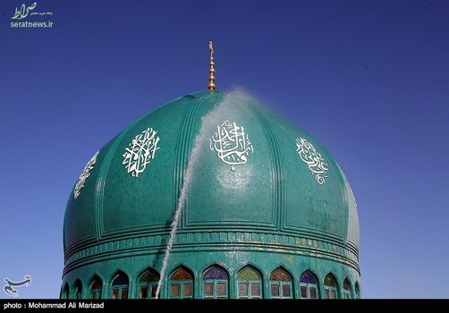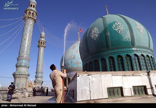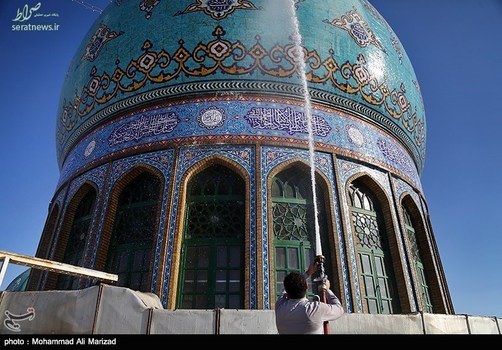 در آستانه ۱۷ رمضان سالروز تاسیس مسجد مقدس جمکران، مراسم شست و شوی گنبد و تعویض پرچم این مسجد برگزار شد.