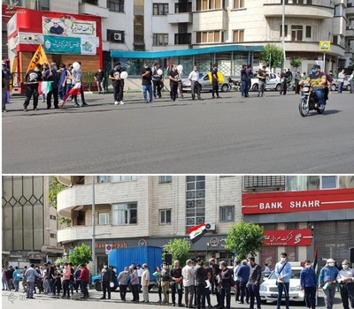 مراسم خودجوش گرامیداشت روز جهانی قدس در میدان فلسطین و با رعایت شیوه نامههای بهداشتی آغاز و مراسم گروه سرود "حرا" اجرا شد.