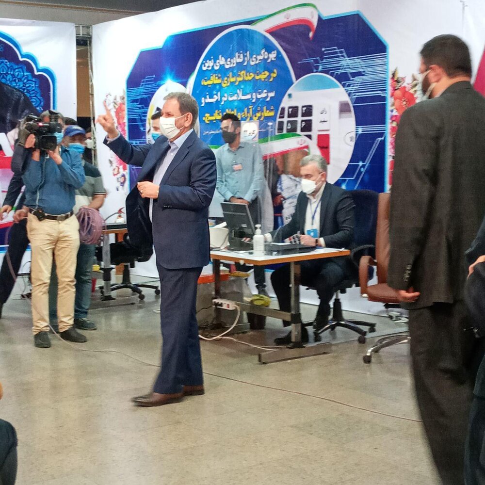 اسحاق جهانگیری برخلاف دیگر کاندیداها که شناسنامه را مقابل دوربین ها می گرفتند انگشتی که با آن اثر انگشتش را ثبت کرده بود را نشان داد.