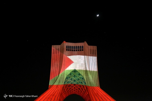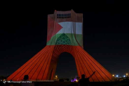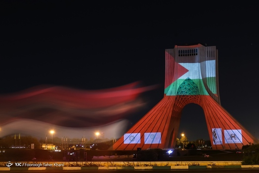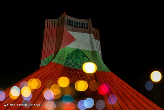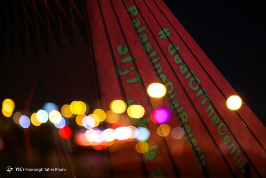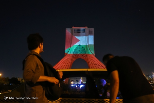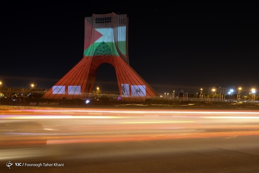 تصاویر / نورپردازی سه بعدی برج آزادی در حمایت از مردم مظلوم غزه