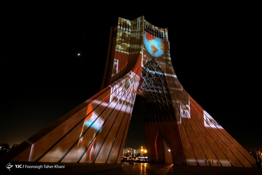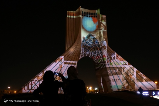 اجرای نورپردازی سه بعدی (ویدئو مپینگ) در میدان آزادی تهران شامگاه یکشنبه ۲۶ اردیبهشت ۱۴۰۰ با موضوع همدردی با مردم مظلوم غزه و در محکومیت حملات رژیم تروریستی صهیونیستی به زنان و کودکان برگزار شد.