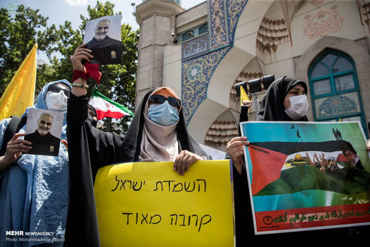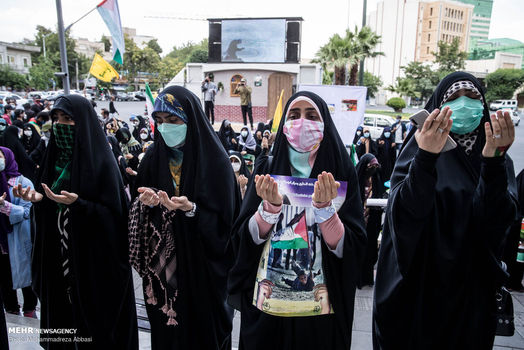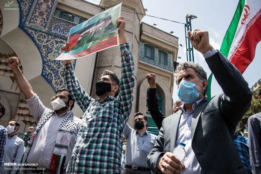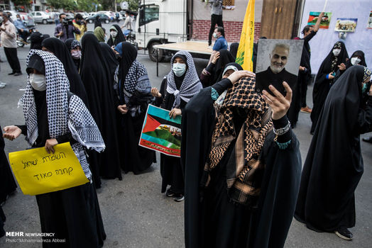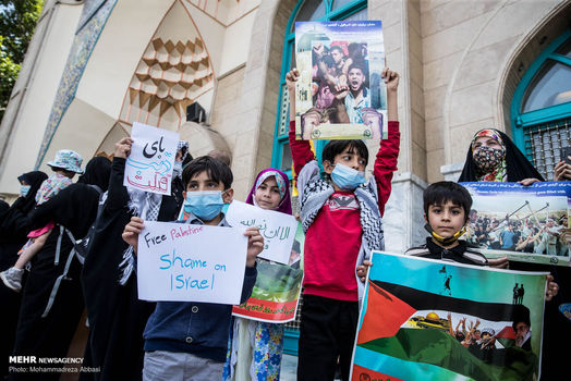جمعی از خانوادههای تهرانی ظهر روز دوشنبه ۲۸ اردیبهشت در اعتراض به جنایتهای رژیم صهیونیستی در کشور مظلوم فلسطین در میدان فلسطین تهران تجمع کردند. در این تجمع مردم با شعارهای ضدصهیونیستی اقدامات اخیر این رژیم غاصب را در کشور مظلوم فلسطین محکوم کردند.