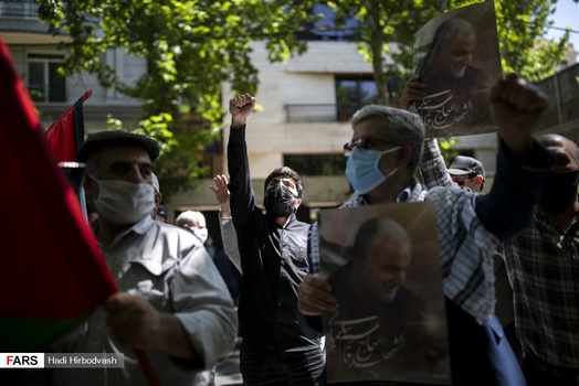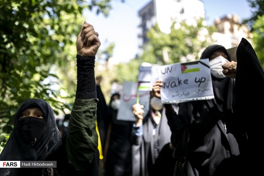 تجمع خود جوش مردم تهران در حمایت از فلسطین و محکوم کردن جنایات رژیم غاصب صهیونیستی صبح روز پنجشنبه ۳۰ اردیبهشت ماه ۱۴۰۰ در مقابل دفتر سازمان ملل در تهران برگزار شد.