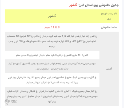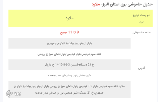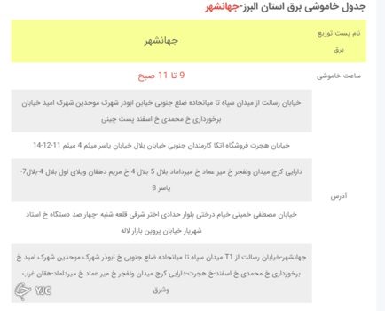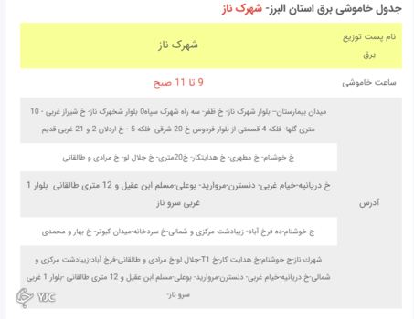 در ادامه جداول خاموشی برق برخی از استانهایی که توانیر با توجه به اوج بار اتخاذ کرده است، مشاهده میکنید.