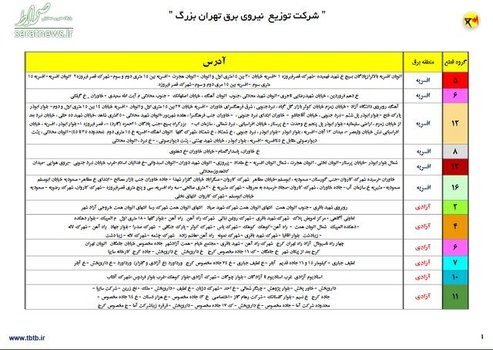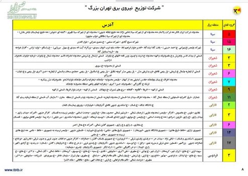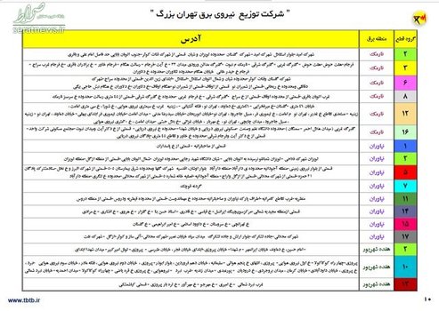 شرکت توزیع برق تهران بزرگ نیز با انتشار این جداول اعلام کرده است که تمامی ظرفیت های فنی و کارشناسی شرکت توزیع نیروی برق تهران بزرگ به منظور جلوگیری از بروز هرگونه خاموشی به کار گرفته شده است. با این حال از آن جا که موفقیت در این مهم، جز با همکاری همه جانبه مشترکان، امکان پذیر نیست در صورت بروز هرگونه مشکل در تامین برق پایتخت به منظور جلوگیری از بروز قطعی گسترده، طبق فایل اقدام به اعمال خاموشی کنترل شده خواهد شد.