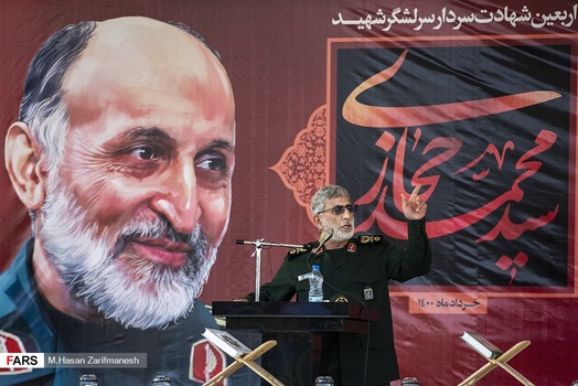 مراسم چهلمین روز بزرگداشت سردار سرلشکر پاسدار شهید سید محمد حجازی جانشین فقید فرمانده نیروی قدس سپاه پاسداران انقلاب اسلامی شنبه ٨ خرداد ۱۴۰۰ با حضور سردار سرلشکر پاسدار حسین سلامی فرمانده کل سپاه پاسداران انقلاب اسلامی، سردار سرتیپ پاسدار علی فدوی جانشین فرمانده کل سپاه، سردار سرتیپ پاسدار اسماعیل قاآنی فرمانده نیروی قدس سپاه، سردار سرتیپ پاسدار امیرعلی حاجیزاده فرمانده نیروی هوافضای سپاه، حجت الاسلام حاجی صادقی نماینده ولی فقیه در سپاه، سردار سرتیپ پاسدار غلامرضا سلیمانی رئیس سازمان بسیج مستضعفین، سردار سرتیپ پاسدار حسین رحیمی فرمانده انتظامی تهران بزرگ و جمعی از فرماندهان نظامی و انتظامی نیروهای مسلح در سازمان بسیج مستضعفین برگزار شد. سردار سرتیپ پاسدار اسماعیل قاآنی فرمانده نیروی قدس سپاه گفت: مجاهدان فلسطینی بیشترین موشک را به تلآویو زدند که پوچ بودن سامانههای دفاعی صهیونیستها را نشان داد و در این بین شهید حجازی در پر کردن دست مقاومت تلاش زیادی کرد.