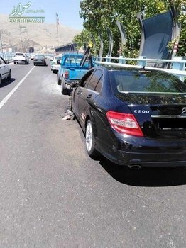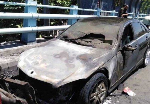 تصاویر/ آتش گرفتن بنز روی پل ارتش تهران