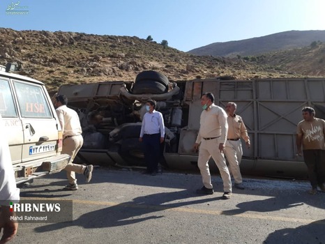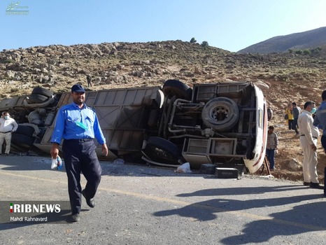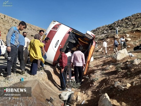 تصاویر/ حادثه واژگونی اتوبوس حامل خبرنگاران محیط زیست