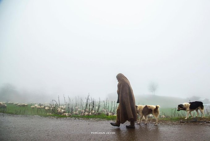 چوپان تالشی با روپوش وشلوار مخصوص نمدی در ارتفاعات تالش عکس از فروزان جاویدی