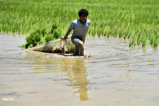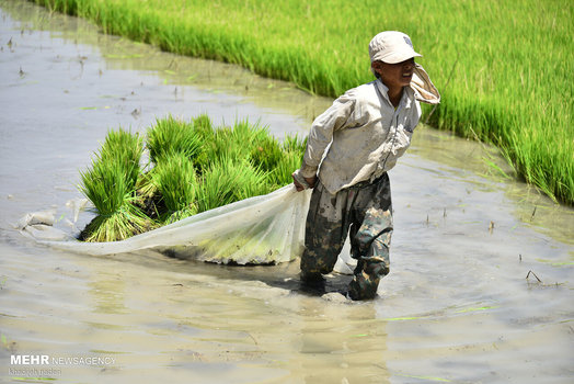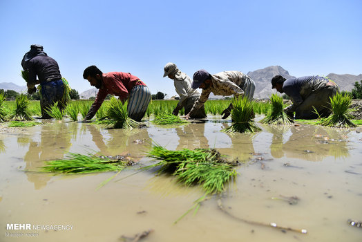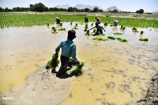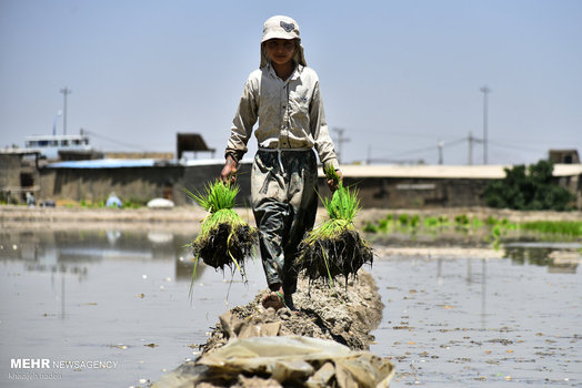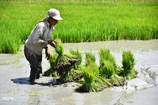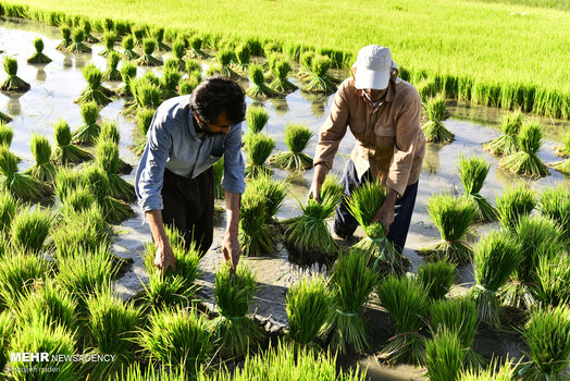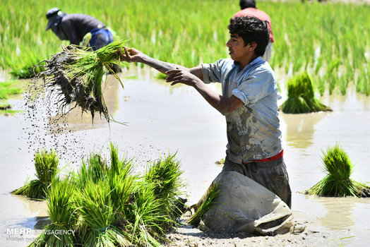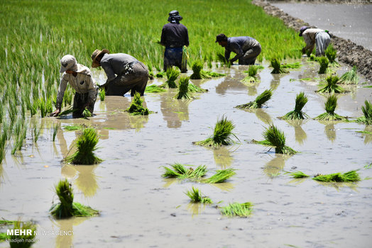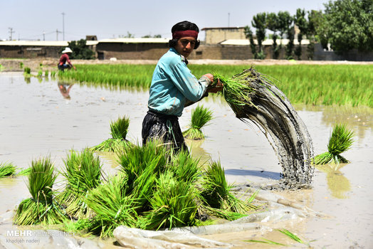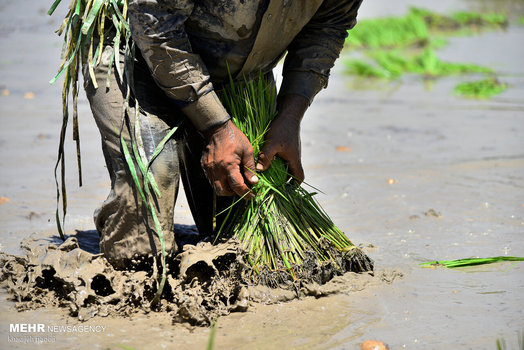 نشا ها به صورت چندتایی کاشته شده و تعداد نشا هایی که کنار هم قرار داده میشوند و همچنین فاصله هر دسته از نشا از دستههای اطراف به نوع نشا ها بستگی دارد. در اصل فاصله کاشت نشاءها بسته به نوع برنج متفاوت است. نشا کاری هر ساله از اوایل خرداد ماه تا آخر تیر ماه در اصفهان انجام میگیرد.