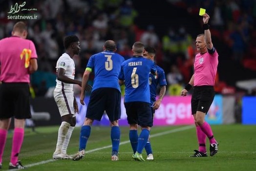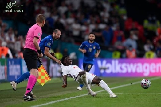 مشخصا آنها به صحنه ای اشاره دارند که جورجو کیه لینی با گرفتن پیراهن بوکایو ساکا در دقایق پایانی مانع پیشروی او شد. ساکا در کنار خط طولی زمین می توانست به حرکت خود ادامه دهد و موقعیت خطرناک ایجاد کند ولی کیه لینی با گرفتن یقه پیراهن او از پشت باعث سرنگونی اش شد. کیه لینی در این صحنه با کارت زرد داور جریمه شد ولی دوست داران انگلیس معتقدند او مستحق کارت قرمز بود و ار این اتفاق رخ می داد احتمالا کار به ضربلات پنالتی کشیده نمی شود و سه شیرها زودتر کار را تمام می کردند.