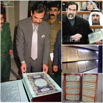 یک کاربر در توئیتی نوشت: میدونستید در دهه ۹۰ میلادی به دستور صدام قرآنی با خون او نوشته شد!