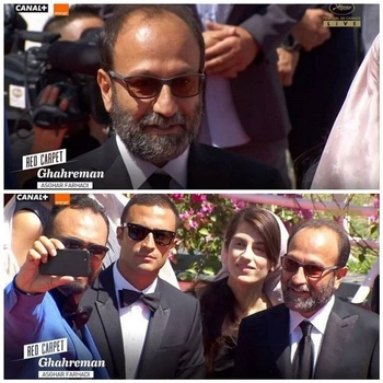 در مراسم فرش قرمز فیلم جدید اصغر فرهادی در جشنواره کن امیر جدیدی و سارینا فرهادی کنار اصغر فرهادی حضور پیدا کردند.