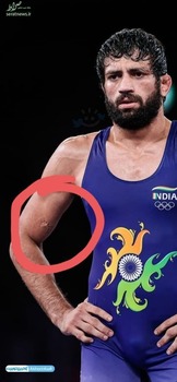 عکس/ رد دندان کشتیگیر قزاقستان روی بازوی کشتیگیر هندی!