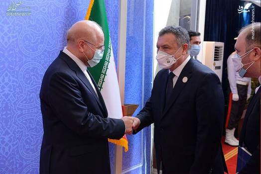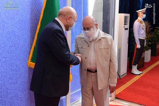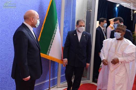 میهمانان مراسم تحلیف سیزدهم ریاست جمهوری هنگام ورود به مجلس شورای اسلامی مورد استقبال رئیس مجلس شورای اسلامی قرار گرفتند.
