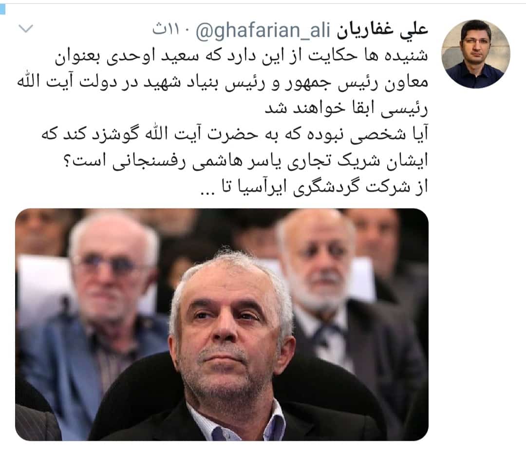عکس/ توئیت مدیرمسئول صراط پیرامون احتمال یک ابقا در دولت رئیسی