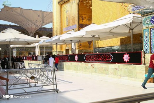 بخش‌های مختلف حرم حضرت علی (علیه السلام) در شهر نجف اشرف در آستانه ماه محرم به نشانه عزا، سیاه پوش شد.