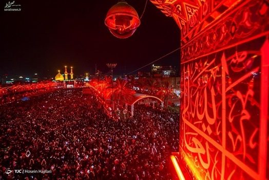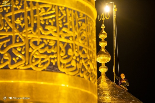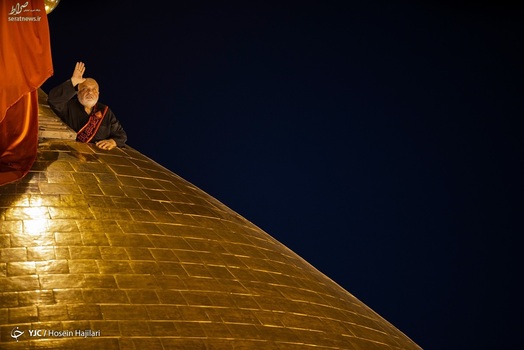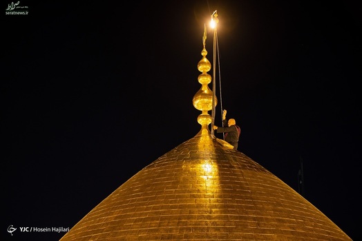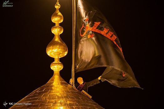 تصاویر/ اهتزاز پرچم عزای حسینی - کربلا معلی