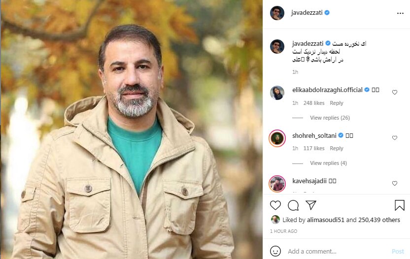 عکس/ پست اینستاگرامی جواد عزتی برای درگذشت علی سلیمانی