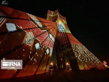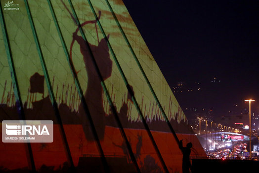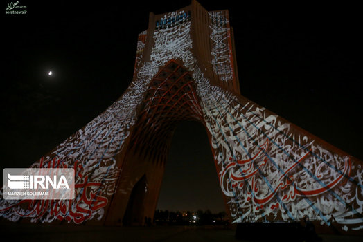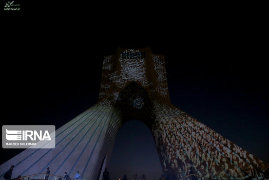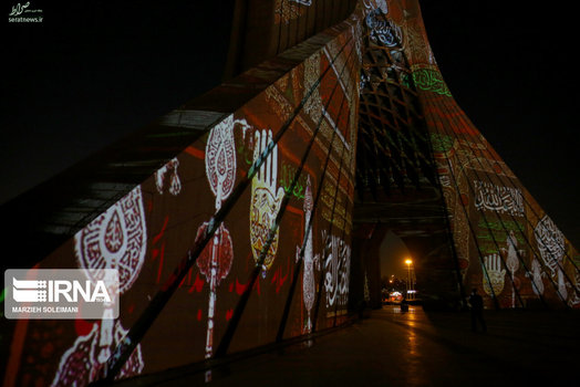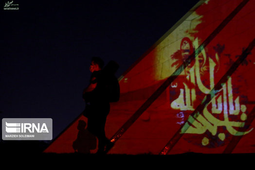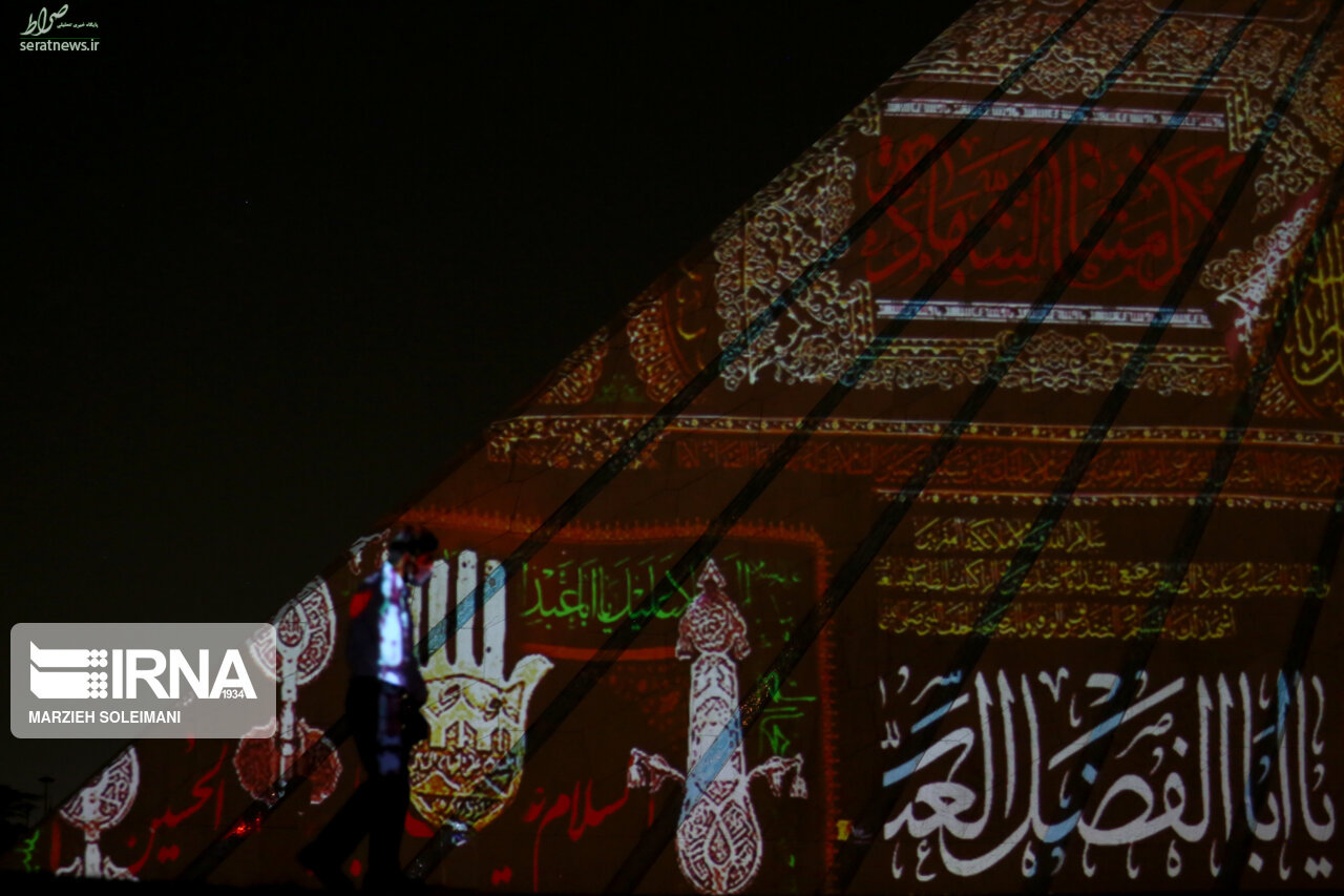 ویدئو مپینگ (نورپردازی سه بعدی) با موضوع محرم شامگاه یکشنبه بر روی برج آزادی اجرا شد.