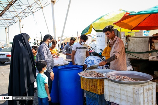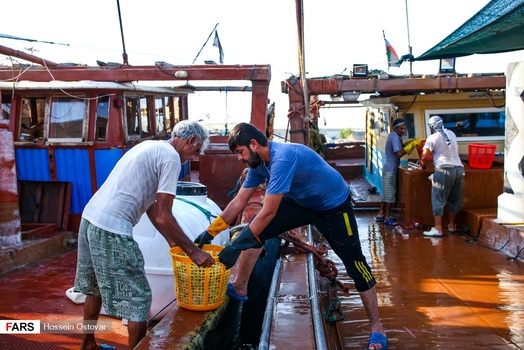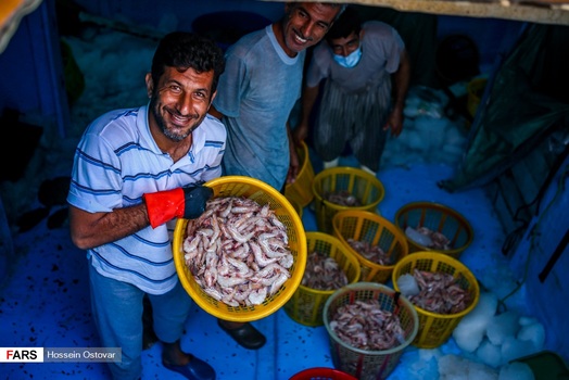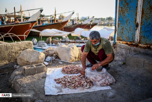 تصاویر/ خرید و فروش میگو در اسکله بوشهر