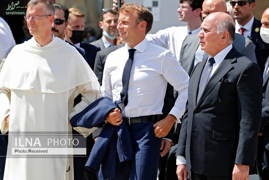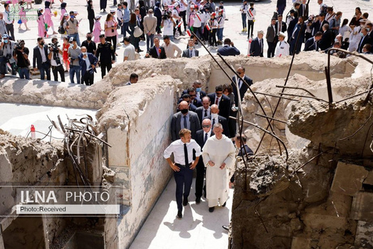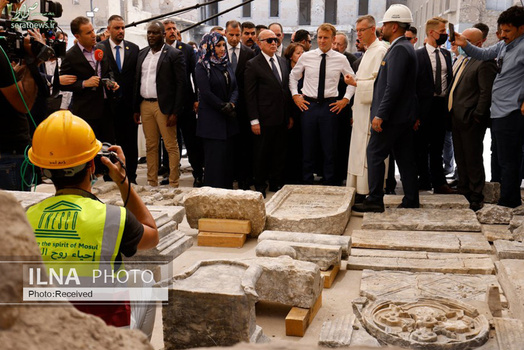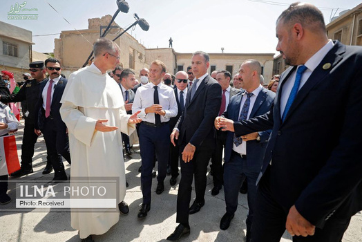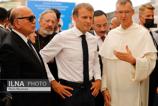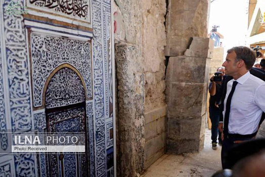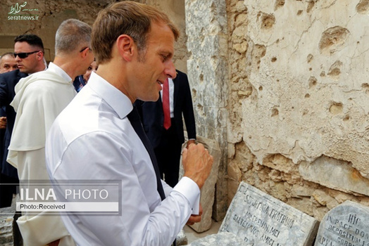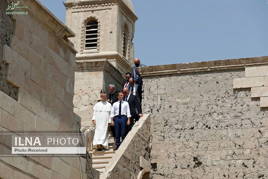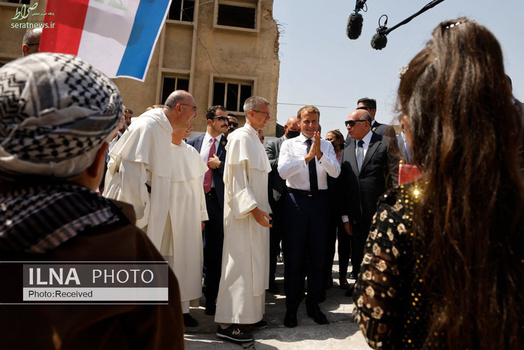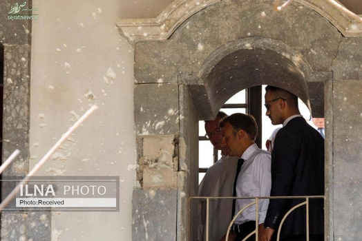 امانوئل مکرون رئیس جمهور فرانسه در شهر موصل از کلیساها و مساجد این شهر جنگ زده دیدن کرد.