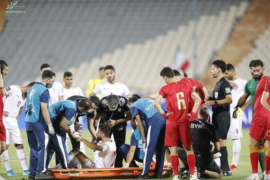 میلاد سرلک و عمر خربین در دقیقه ۲۷ بازی ایران و سوریه برخورد شدیدی با هم داشتند که هر دو بازیکن برای مداوا به بیرون از زمین رفتند.