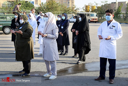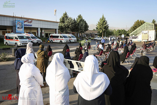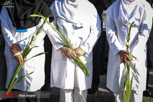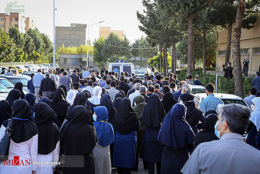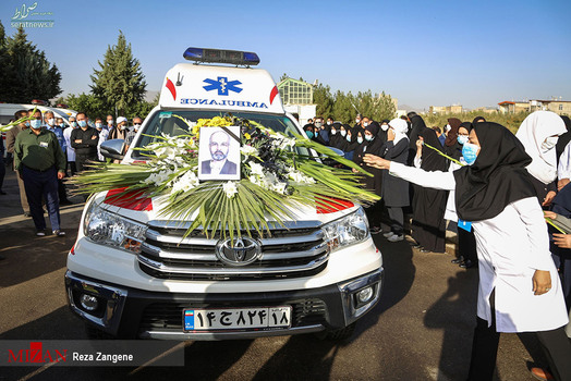 پیکر مطهر شهید سلامت دکتر محسن احمدی قمی امروز پنجشنبه (۱۸ شهریور) در محوطه بیمارستان آتیه تامین اجتماعی همدان بر دوش همکارانش تشییع شد.