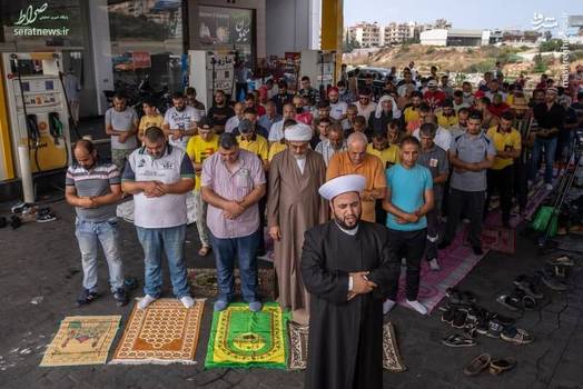 عکس/ اقامه نماز جمعه در پمپ بنزینهای لبنان