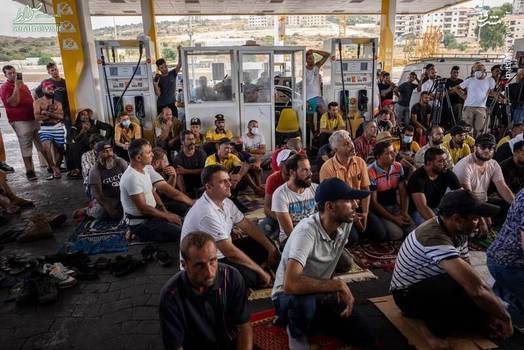 دهها تن از شهروندان لبنانی در اعتراض به بحران سوخت، نماز جمعه را در محوطه پمپ بنزینها در شهر «صیدا» واقع در جنوب این کشور اقامه کردند.
