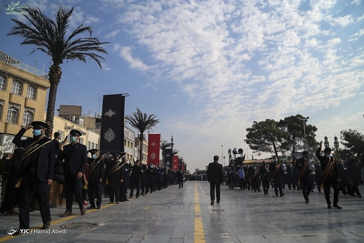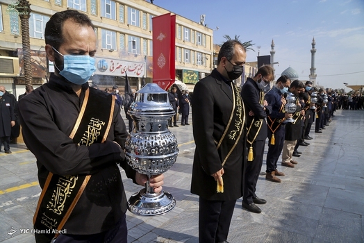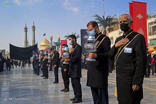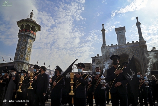 دسته خادمین آستان مقدس حضرت فاطمه معصومه (س) صبح روز پنجشنبه ۱۵ مهر ۱۴۰۰ در سالروز شهادت امام رضا (ع) به عزاداری پرداختند.