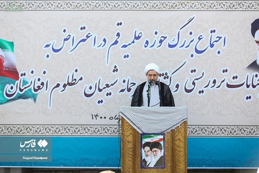 اجتماع بزرگ طلاب، اساتید و روحانیون قم برای اعلام انزجار از جنایات تروریستی و کشتار بیرحمانه شیعیان مظلوم افغانستان امروز یکشنبه ۲۵ مهرماه ۱۴۰۰ در مدرسه فیضیه قم برگزار شد. شرکتکنندگان در این اجتماع، با صدور بیانیهای کشتار شیعیان و حملات تروریستی در افغانستان را محکوم کردند.