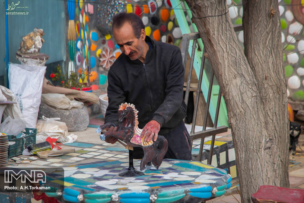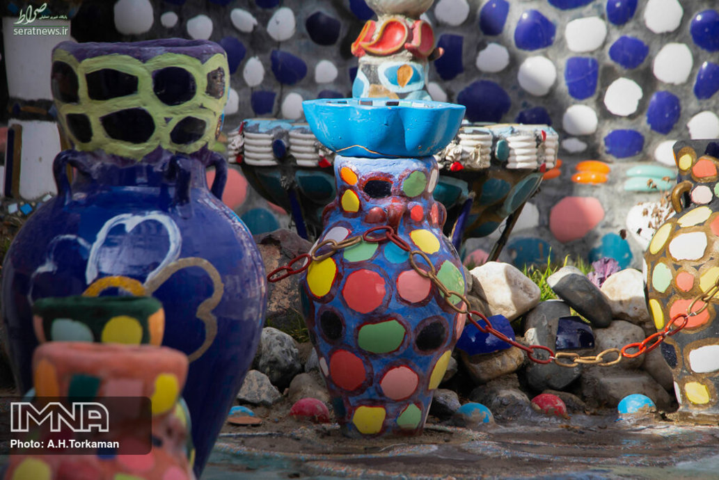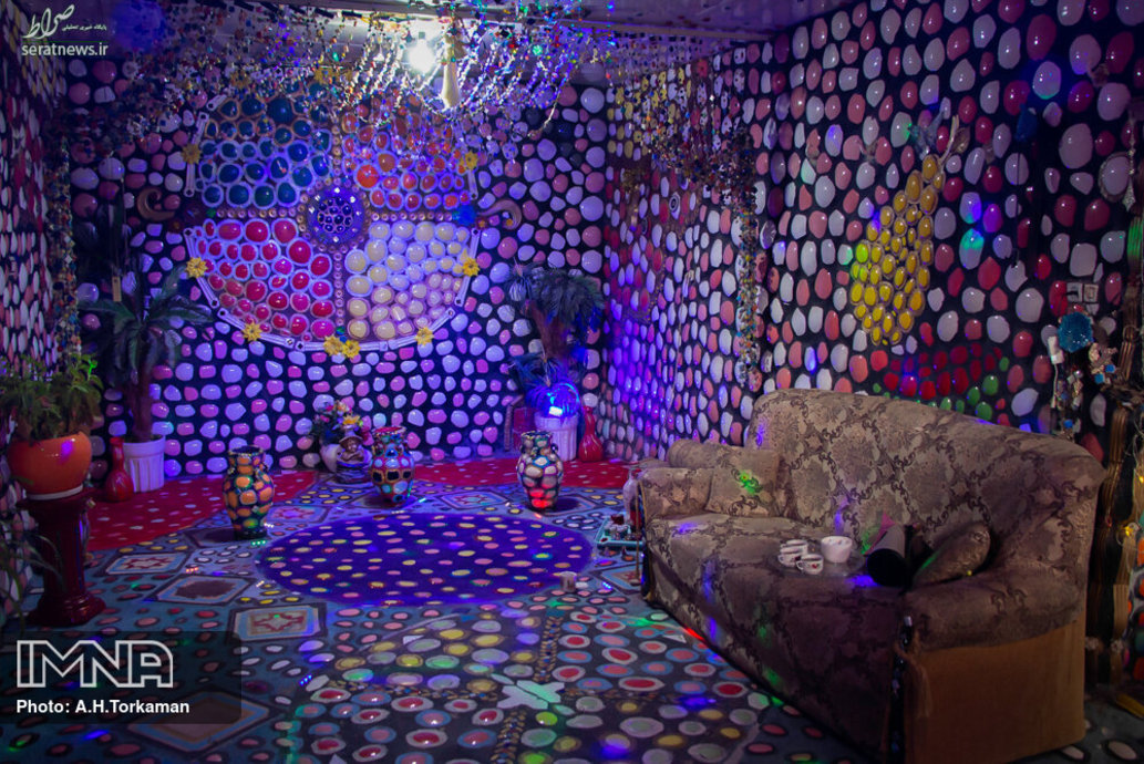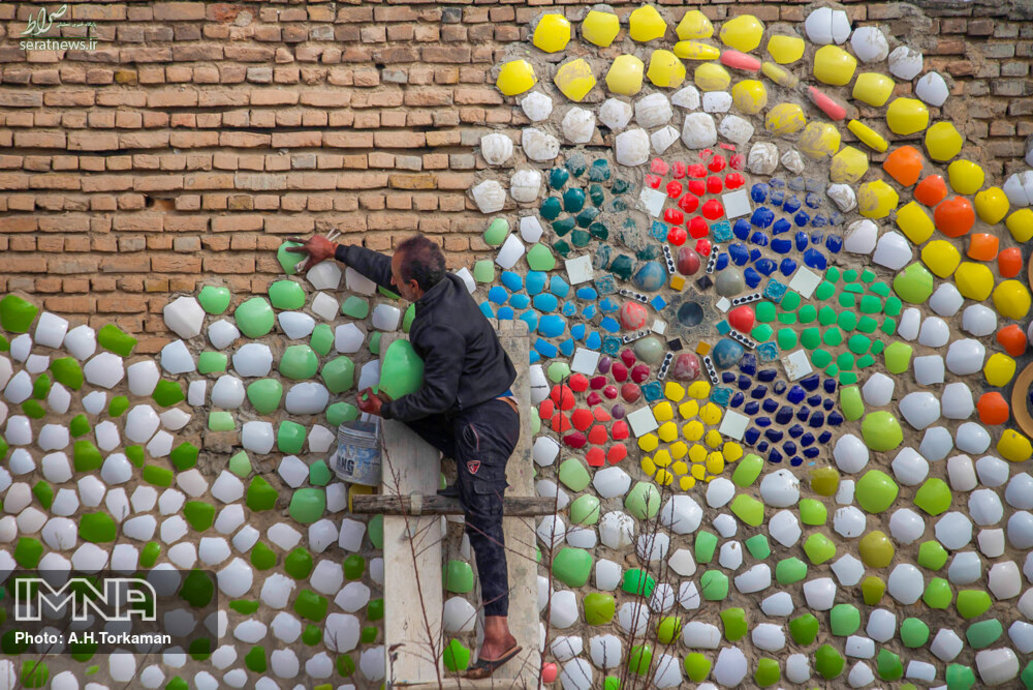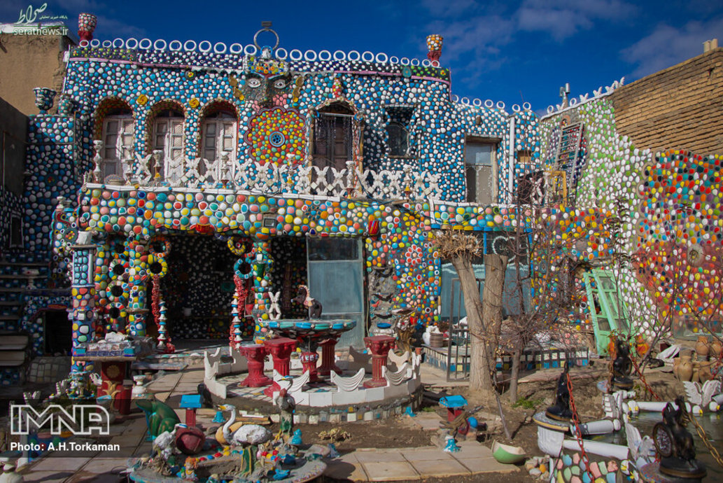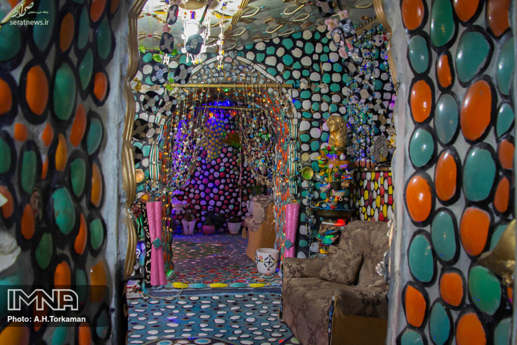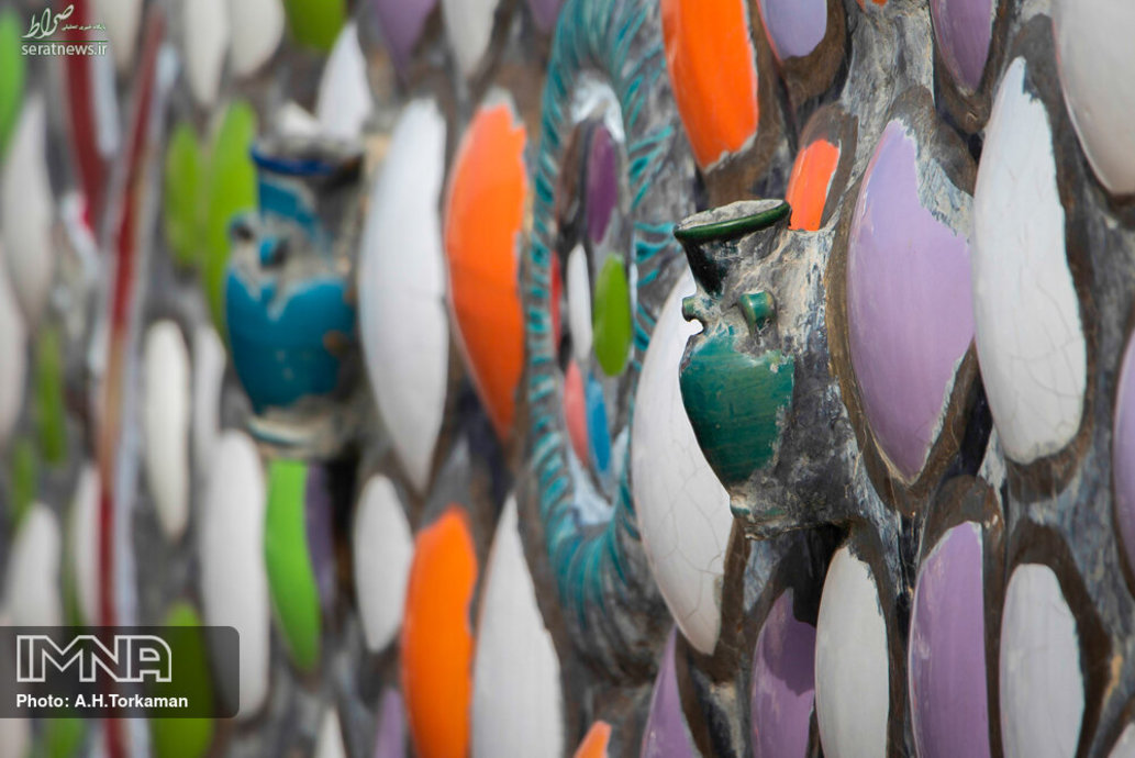 رضا آصفی هنرمند خلاق در شهر صالحآباد همدان با تکههای شکسته و رنگی سفال بند خانهای زیبا و رویایی را ساخته است که پنج سال مشغول ساخت این خانه از تکههای سفالی بوده که از لالجین جمع آوری کرده و کار طراحی و چیدمان آن را نیز به تنهایی انجام داده است. سفالهای کار شده نه برش داده شده اند و نه ابزاری استفاده شده است بیشتر تکههایی که در دیوار و کف کار شده از گلدانهای شکسته شده است.