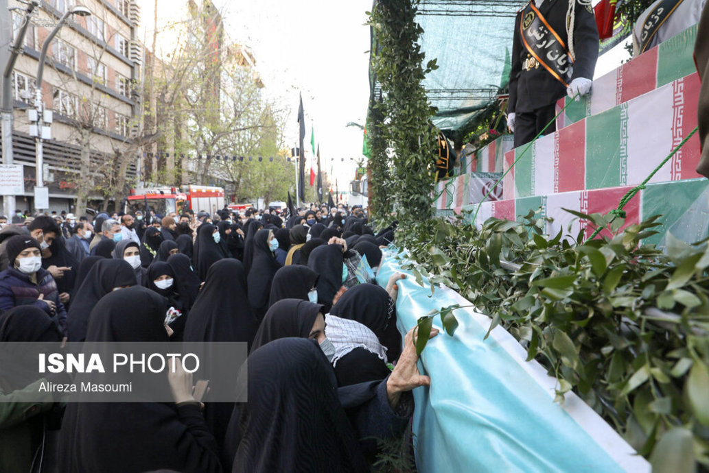 رئیس جمهور از تقاطع خیابان فلسطین به مسیر عشق و ارادت قلبی شهروندان تهرانی به حضرت زهرا (س) و راه امام و شهدا پیوست و همگام با تشییع کنندگان با مشایعت پیکر شهیدان به مقام شامخ شهدا ادای احترام کرد.