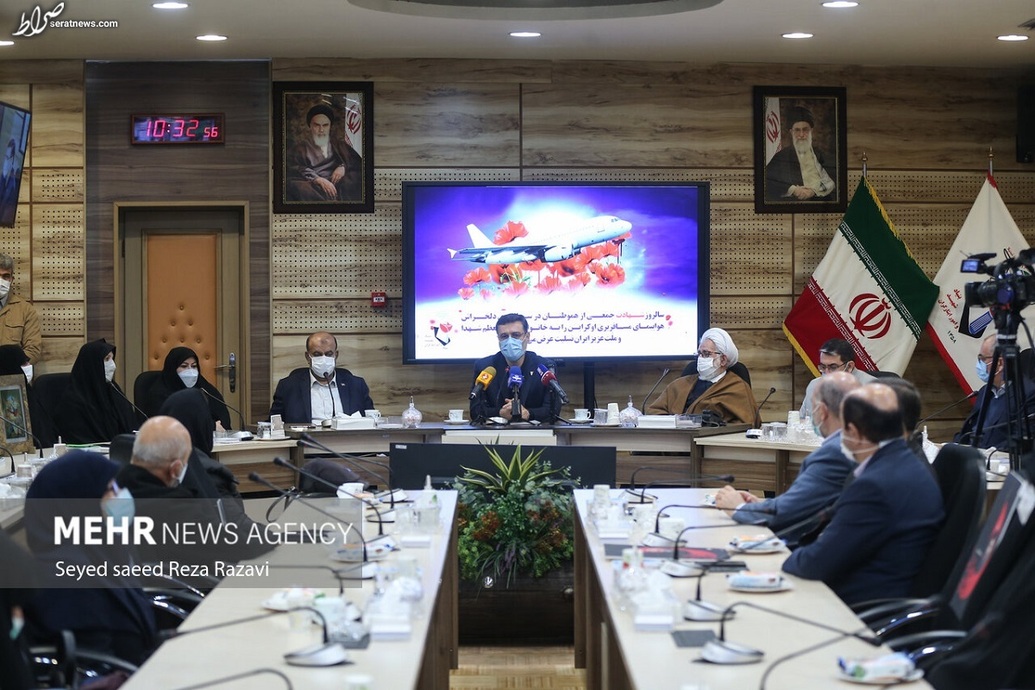 مراسم گرامیداشت شهدای حادثه سقوط هواپیما اوکراینی صبح امروز یکشنبه ۱۹ دی ۱۴۰۰ با حضور سید امیرحسین قاضی زاده هاشمی معاون رئیس جمهور و رئیس بنیاد شهید و امور ایثارگران و رستم قاسمی وزیر راه و شهرسازی و خانوادههای شهدای حادثه هواپیمای اوکراینی در سالن شهید رسول زاده بنیاد شهید برگزار شد.