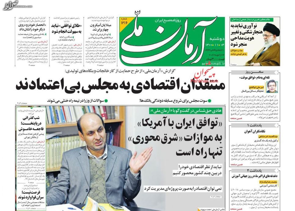 تصاویر / پیشخوان روزنامههای صبح کشور (شنبه ۲ بهمن)