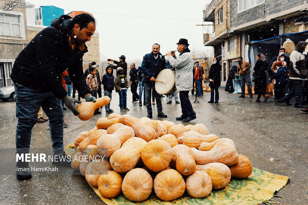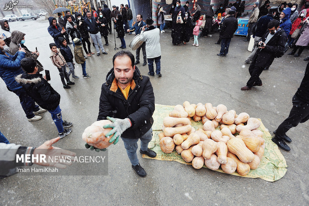 جشنواره سنتی کدو در روستای «تفریجان» همدان ۷ بهمن با حضور گسترده اهالی و مردم همدان در هوایی برفی برگزار شد.
