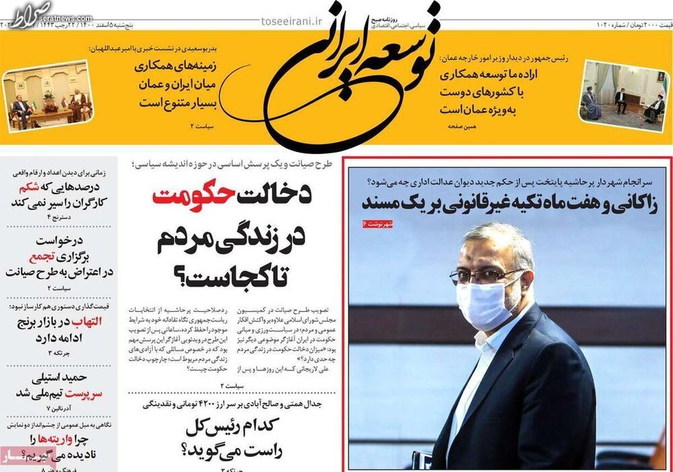 تصاویر / پیشخوان روزنامههای صبح کشور (پنجشنبه ۵ اسفند)