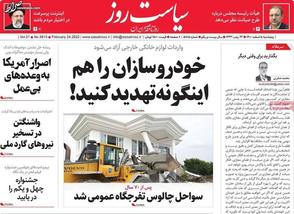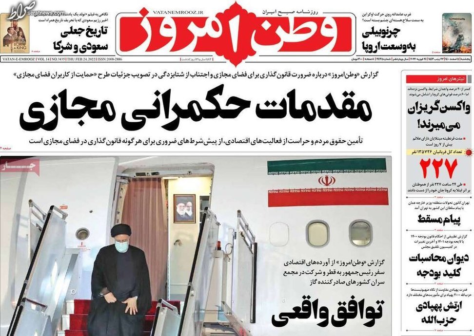 تصاویر / پیشخوان روزنامههای صبح کشور (شنبه ۷ اسفند)