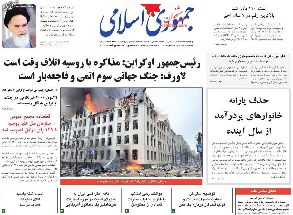 تصاویر / پیشخوان روزنامههای صبح کشور (پنجشنبه ۱۲ اسفند)