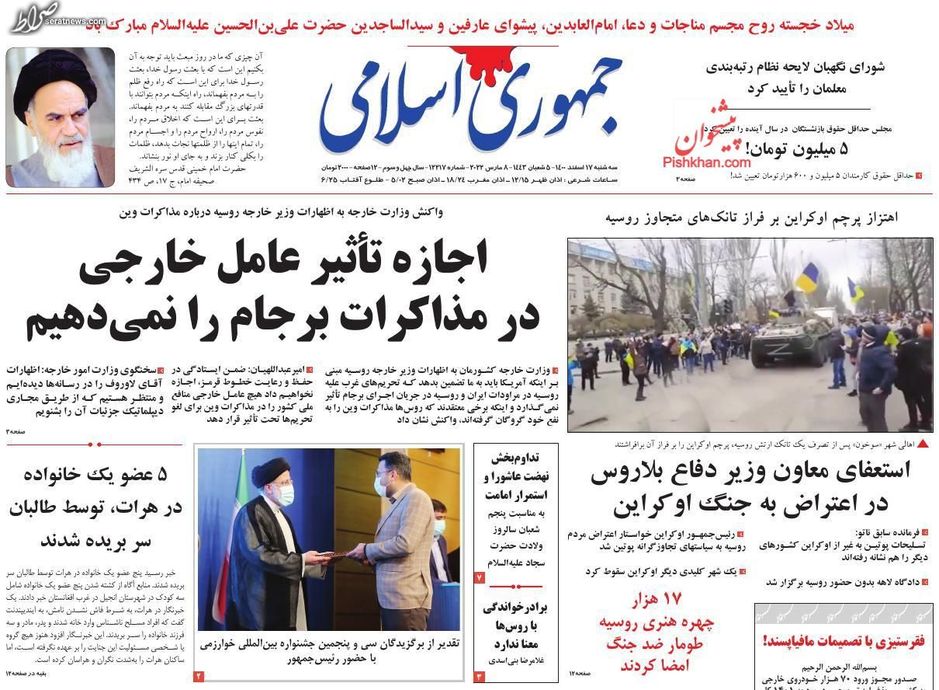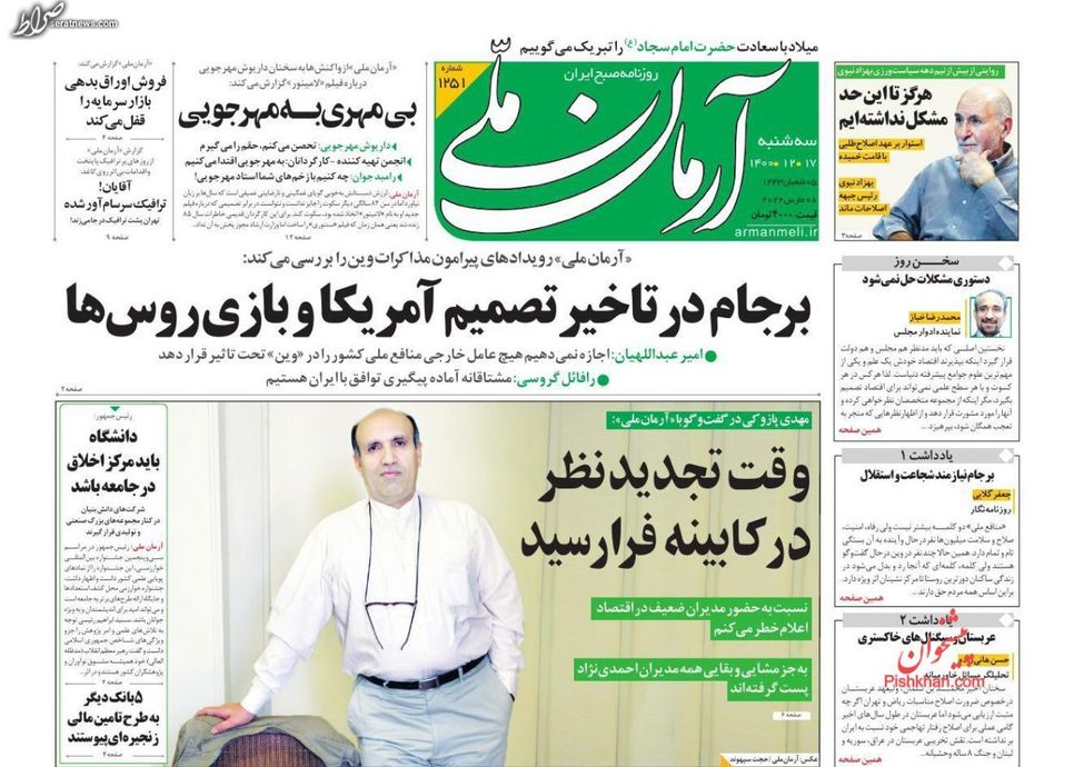 تصاویر / پیشخوان روزنامه‌های صبح کشور (سه شنبه ۱۷ اسفند)