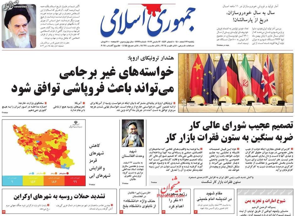 تصاویر / پیشخوان روزنامه های دوشنبه 22 اسفند