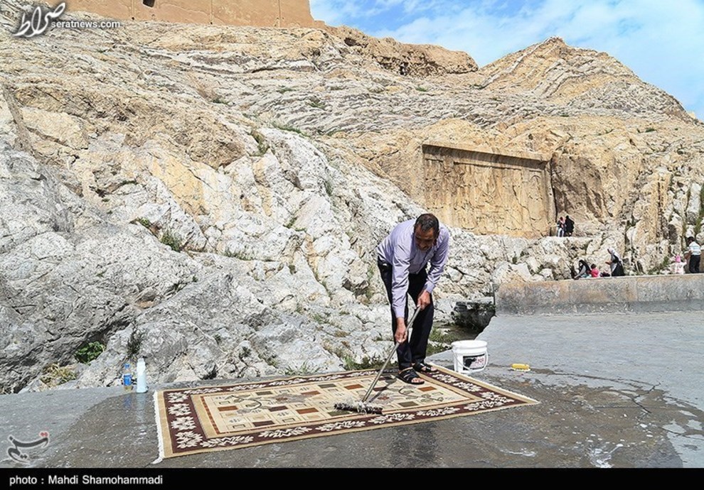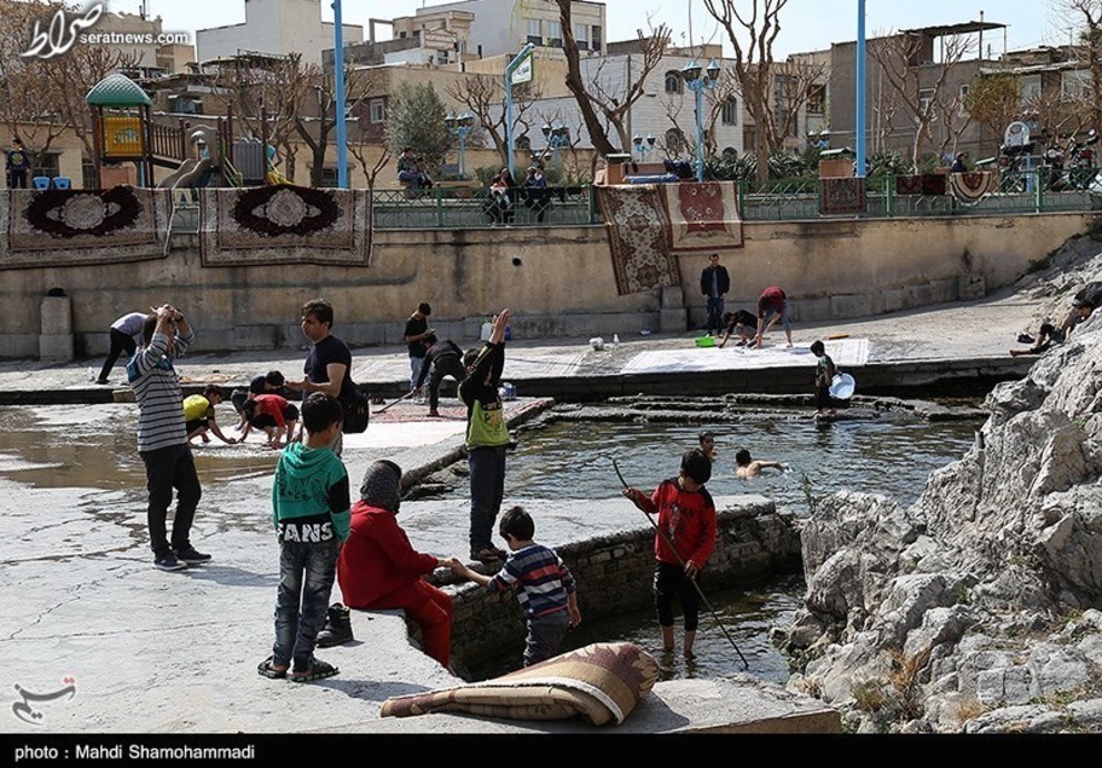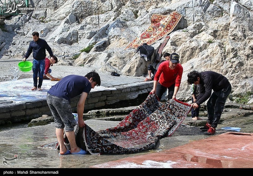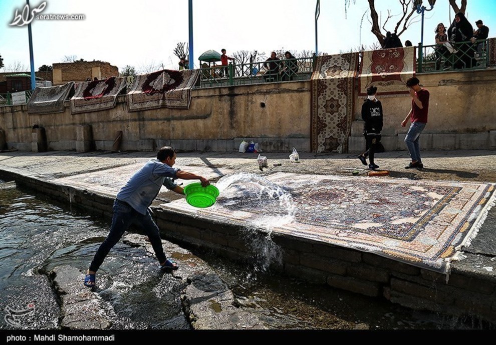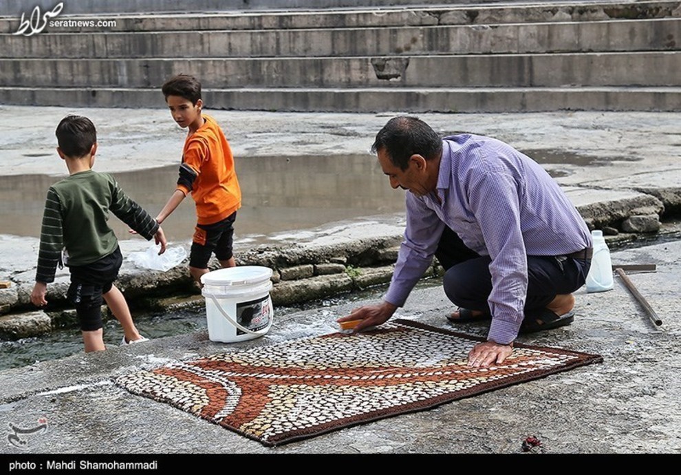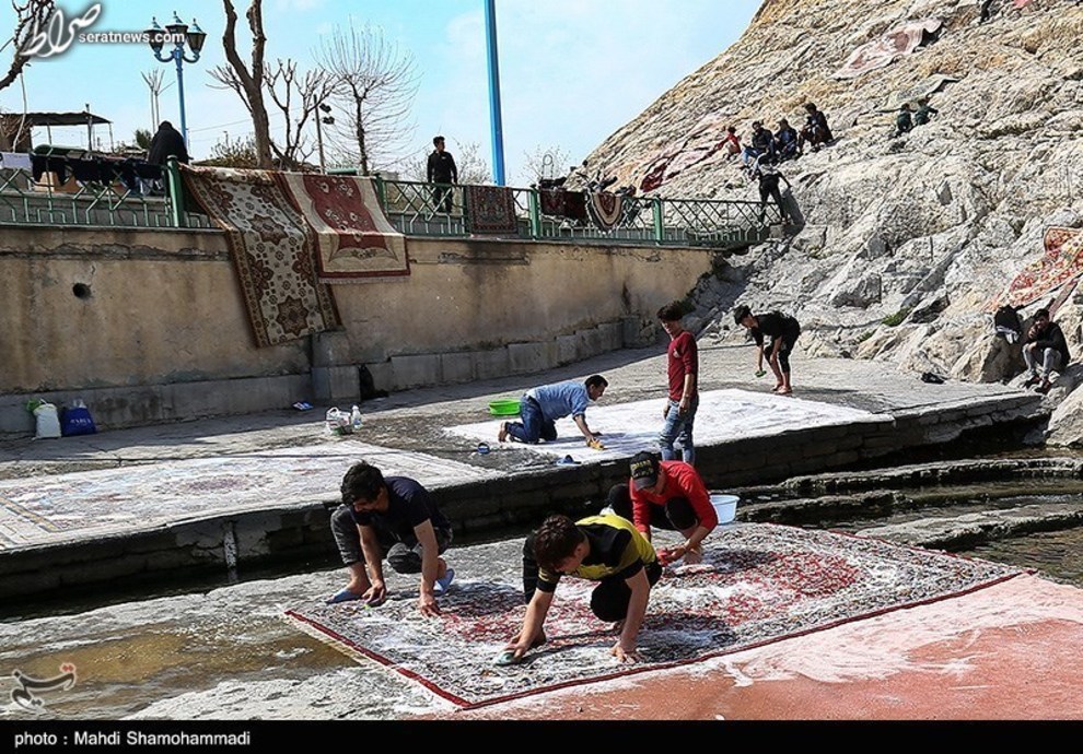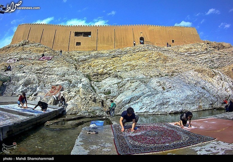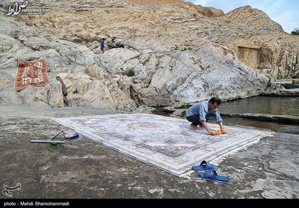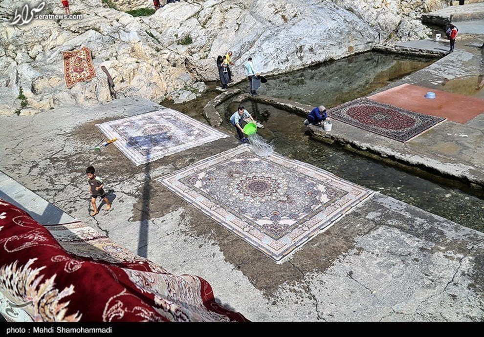 تصاویر / قالیشویی در آستانه نوروز در محوطه تاریخی چشمه علی - شهرری