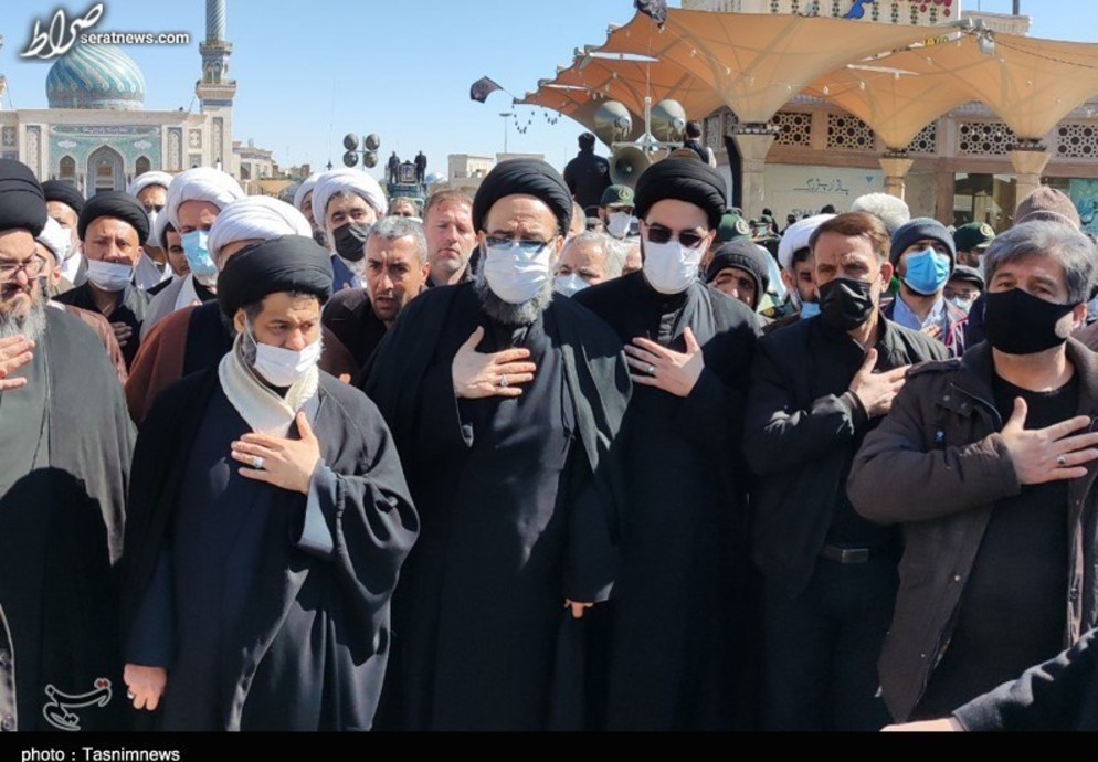 حجت الاسلام و المسلمین محمدی گلپایگانی رئیس دفتر مقام معظم رهبری، آیت الله سعیدی تولیت حرم حضرت معصومه(س)، آیت الله اعرافی مدیر حوزههای علمیه، سید محمد شاهچراغی استاندار قم، طلاب و روحانیون و اقشار مختلف مردم در این مراسم حضور داشتند.
