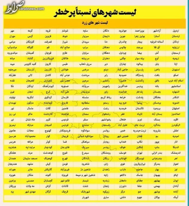 لیست کامل رنگبندی کرونایی شهرهای کشور در ادامه میآید: