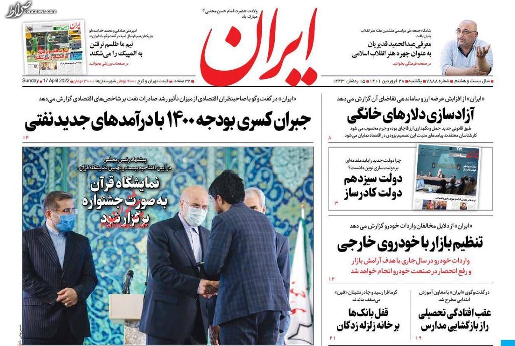 تصاویر / پیشخوان روزنامه های یکشنبه 28 فروردین