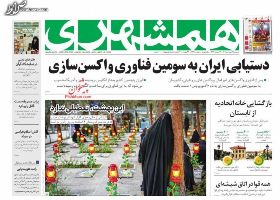 تصاویر / پیشخوان روزنامه های سه شنبه 30 فروردین