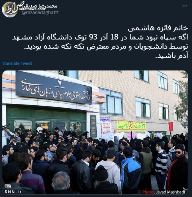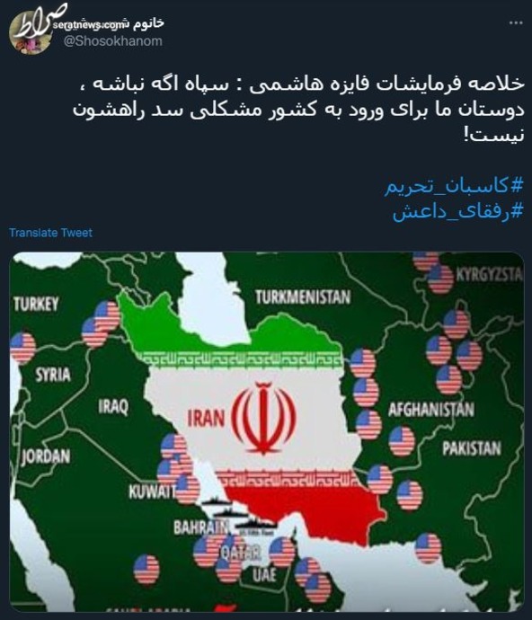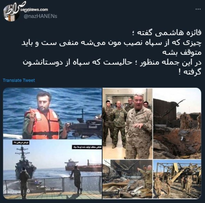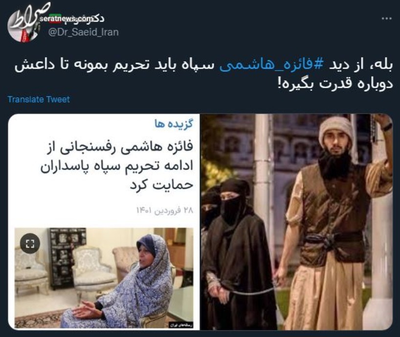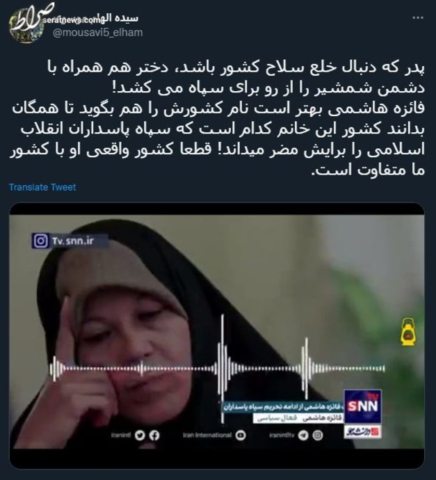 حال #فائزه_هاشمی علیه اقدامات سپاه لجن پراکنى کند، مهم است؟!